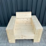 Deze massieve loungebank is goed te combineren met de bijpassende massieve steigerhouten loungestoel.
